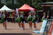 Die Shadows Cheerleader feuern beim Damenländerspiel Germany vs. Great Britain an Zum Auftakt der Europameisterschafts-Länderspielserie empfing die deutsche Frauen Nationalmannschaft die Vizeweltmeister aus Großbritannien. Über 1100 Zuschauer sahen am Pfingstsonntag ein spannendes Spiel zwischen Deutschland und England im Walder Stadion "Jahn-Kampfbahn" in Solingen. Mit dabei waren die Mülheim Shamrocks Cheerleader, die Shadows. Nach dem Spalier für die Nationalmannschaft zeigen die Shadows Cheerleader, von der Sideline aus, ihr Können. Auch in der Halbzeitpause boten die Mädels den Zuschauern eine perfekte Show. Sehr zufrieden mit dem Team und dem Spieltag waren die Coaches Savi, Tani und Jill. |